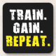 TRAIN, GAIN, REPEAT - Gym Workout Motivational Drink Coaster