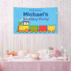 Colourful cartoon toy train on a blue banner. Templates to add your name.