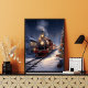 "Experience the thrill of train travel through a snowy wonderland with this captivating design. Journey alongside the locomotive as it navigates through snow-covered tracks, surrounded by the serene beauty of winter landscapes. Embrace the adventure and wonder of exploring new horizons in this special artwork."