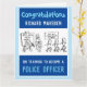 For a Policeman who has completed his or her police academy training. Funny Cartoon shows Policemen at Police TrainingAcademy learning the Fundamentals. Funny cartoon illustration has a Class of policemen at a Police Academy. Congratulations card for a new police graduate. Qualified policeman.