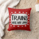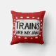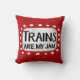 "Trains Are My Jam" is a fun text design with a white accent shape surrounded by white whimsical textured dots.