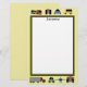 Planes, trains and automobiles, Oh My! Any young boy would be so excited to have his own custom monogrammed stationery that's lined with a school bus, two cars, plane, tractor, an ATV, train and an 18 wheeler ! The outside border is yellow and has a wide black stripe with a thin yellow stripe inside it to appear like a road. The rest of the notepad is white and your child's name is at the top. The reverse side is solid yellow so he can write a letter on the back too. This would make a great gift for a young boy's birthday, for school or even to add to his Easter basket!