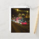 Postcard with photo of tram decorated as a train with red, green, yellow and white lights in Blackpool as part of annual illuminations