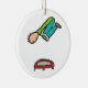 Lightweight, smooth, pure white ornament with nice sheen. Perfect size to be seen from across the room ... and to attract closer inspection! Price was great for ordering enough for the whole family! Clear, bold black design just as requested. Matches the order exactly. Just so nice!