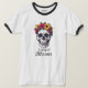 Embrace the quiet elegance of our "Tranquil Bloom" design. This captivating piece showcases a skull, reimagined in a state of serene contemplation, crowned with a stunning array of pink, yellow, and orange flowers amidst verdant green leaves. It's a powerful artistic statement about finding beauty and life even in the most unexpected places, offering a unique blend of reflection and radiant charm. Wear a piece that speaks to the soul.