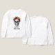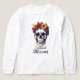 Embrace the quiet elegance of our "Tranquil Bloom" design. This captivating piece showcases a skull, reimagined in a state of serene contemplation, crowned with a stunning array of pink, yellow, and orange flowers amidst verdant green leaves. It's a powerful artistic statement about finding beauty and life even in the most unexpected places, offering a unique blend of reflection and radiant charm. Wear a piece that speaks to the soul.