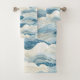 Tranquil Blue and White Wave Pattern Bath Towel Set