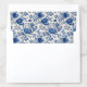 This wedding envelope liner features a beautiful floral pattern with intricate blue flowers and foliage on a cream background, creating an elegant and vintage-inspired look. The design showcases large peony-like blooms surrounded by smaller flowers and detailed leaves, all rendered in various shades of blue for a vibrant yet harmonious appearance. With its dense, seamless coverage and classic porcelain print effect, this liner adds a touch of sophistication to your special day. Perfect for enhancing the overall aesthetic of your wedding stationery, it conveys a mood of tranquility and timeless charm.