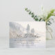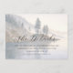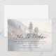 This wedding enclosure card features a serene watercolor landscape with soft blues and greens, capturing the tranquility of a lakeside scene. The design includes stylized pine trees on gentle slopes, creating a peaceful and natural atmosphere. Elegant script typography highlights "The Details," while smaller serif font provides additional information, offering a sophisticated contrast. Perfect for conveying essential event details, this card exudes a calm and inviting mood, ideal for weddings or special occasions.