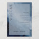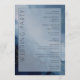 This elegant wedding program features a serene watercolor design with soft blue tones and subtle gold accents, creating a tranquil and sophisticated atmosphere. The layout is balanced, with the word "WELCOME" prominently displayed vertically on the left in bold serif font, while the right side lists ceremony details in clean, organized sans-serif typography. The overall style is formal yet inviting, perfect for celebrating a special occasion with an ethereal touch.
