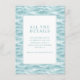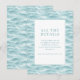 This wedding enclosure card features a serene and modern design with a central white square framed by a thin teal line, set against a textured background of wavy water in soft blues and turquoise. The minimalist style emphasizes clarity and simplicity, using elegant serif typography to highlight the main heading "ALL THE DETAILS" and guide guests to visit a customizable website for more information. The calming color palette and abstract water representation create a tranquil mood, making it perfect for providing event details while evoking a sense of anticipation and elegance.