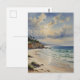 Experience the serene beauty of a "Tranquil Coastal Sunrise" with this captivating watercolor beach postcard. This exquisite piece captures the essence of a peaceful morning by the sea, where the sun rises over the horizon, casting a golden glow on the tranquil waves and the rugged cliffs. The delicate interplay of light and shadow, combined with the soft hues of the watercolor medium, creates a soothing and calming visual experience.