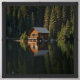 This stunning wall art depicts a peaceful lakeside cabin, nestled among tall pine trees and perfectly reflected in the still, mirror-like water. The serene atmosphere of the scene invites a sense of calm and relaxation, capturing the beauty of nature and the tranquility of a quiet retreat. The rich green of the pine trees contrasts beautifully with the soft reflections in the lake, creating a harmonious balance. Ideal for bringing a touch of nature's peacefulness into your home or office, this artwork evokes the essence of a quiet escape in the wilderness.
