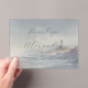 This elegant wedding invitation features a serene coastal theme with a watercolor background transitioning from soft blue to pale green, creating a calming atmosphere. A lighthouse illustration in muted red and white stands against rolling hills, while sophisticated typography combines script and serif fonts for a balanced hierarchy. The design conveys tranquility and romance, perfect for formal celebrations, with customizable details for the event date and location. Ideal for couples seeking a blend of traditional elegance and modern minimalism.