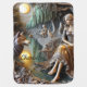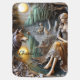 As twilight descends, a native Indian woman sits elegantly by a tranquil river. Her gaze meets that of a majestic wolf, their bond evident amid the lush surroundings