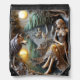 Tranquil river night with an Indian and wolf Drawstring Bag