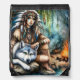 Tranquil scene: Native and wolf by water Drawstring Bag