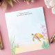This charming personalized notepad features a beautifully illustrated sea turtle swimming near the shore, surrounded by soft watercolor ocean hues and delicate coastal plants. The peaceful beach-inspired design creates a serene and calming aesthetic, perfect for marine life lovers, ocean enthusiasts, and those who appreciate tropical themes. Customize the text at the top for a unique touch, making it an ideal gift for beach lovers, journaling, or stylish office stationery.