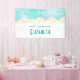 Birthday banner with a serene summery design. Turquoise / aqua green watercolor image with a wavy faux gold border. Elegant and lovely.