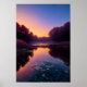 This captivating digital artwork offers a glimpse into a peaceful evening scene, where a quiet river flows gently amidst the calm surroundings. In the distance, a forest rises up, with the orange glow of the setting sun casting a warm, inviting glow over the landscape. This artwork captures the essence of nature's beauty and serenity, making it a perfect addition to any art collection.