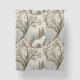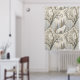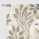 This serene winter forest curtain features a majestic white wolf at its center, surrounded by snow-dusted trees in soft tones of cream, brown, grey, and pale blue. A second wolf is subtly nestled in the lower corner, hinting at unseen life within the quiet woodland. With a mix of bare-branched and evergreen trees, framed by delicate decorative elements, this design evokes natural beauty, stillness, and a touch of winter magic. Perfect for nature lovers, animal enthusiasts, and seasonal or fantasy-themed settings.