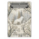 This serene winter forest clipboard features a majestic white wolf at its center, surrounded by snow-dusted trees in soft tones of cream, brown, grey, and pale blue. A second wolf is subtly nestled in the lower corner, hinting at unseen life within the quiet woodland. With a mix of bare-branched and evergreen trees, framed by delicate decorative elements, this design evokes natural beauty, stillness, and a touch of winter magic. Perfect for nature lovers, animal enthusiasts, and seasonal or fantasy-themed settings.