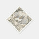This serene winter forest table napkin features a majestic white wolf at its center, surrounded by snow-dusted trees in soft tones of cream, brown, grey, and pale blue. A second wolf is subtly nestled in the lower corner, hinting at unseen life within the quiet woodland. With a mix of bare-branched and evergreen trees, framed by delicate decorative elements, this design evokes natural beauty, stillness, and a touch of winter magic. Perfect for nature lovers, animal enthusiasts, and seasonal or fantasy-themed settings.