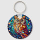 Tranquility in Glass Bench And Flowers On Stained Keychain