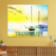 Pastel colors canvas print wall art. sailboats and docked in calm waters with 2 seagulls flying overhead. A true scene of peace, quiet and tranquility