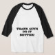 I bought the Men's Basic 3/4 Sleeve Raglan T-Shirt, White/Navy. It arrived on time for a gift and is of a great quality and fits perfectly! So cute! Zazzle has done it again! The printing was clear and filled in solidly.