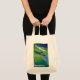 The printing came out very well, better than I had anticipated. The natural color fabric is sturdy with strong seams and comfortable handles. This tote fits easily over my shoulder. As it is filled, the bottom flattens out--very cool! I would buy this product again. This grocery tote holds a lot of groceries! The image quality was very good. The colors were a little darker than I had expected. The darkness may have been due to printing on a natural color fabric rather than on white. The cat design is attractively centered on the tote. The spirit of the design is very lively, just as it appears on the Zazzle website.