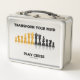 Make others do a double-take on what they should do with a dose of chess attitude with this metal lunch box featuring a reflective chess set along with the following chess advice: "Transform Your Mind Play Chess". Memorable chess saying metal lunchbox for any avid chess player or chess teacher!