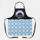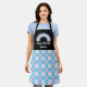 Medium-sized apron with an image of a transgender pride flag and a rainbow, and repeating seamless flower pattern; pink, white, and blue design on a black background, a blue variant, with a customizable text template for your own name or message