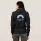 Hoosdie with an image of a transgender pride flag and a rainbow, and repeating seamless flower pattern; pink, white, and blue design on a black background, a pink variant, with a customizable text template for your own name or message