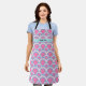 Medium-sized apron with a seamless pattern with rainbows in the colors of the transgender pride flag; pink, white, and blue on a pink background, with a customizable text template for your own name or message