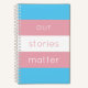 This design features the trans pride flag colors of white, blue and pink. On the front is the slogan 'our stories matter'. On the back is a Words of Wisdom section for you to write notes as you read. You can customise every element of this design in Zazzle, from text to colours.