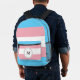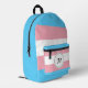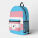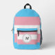Backpack with the transgender pride flag with rainbow stripes of blue, white, and pink, trans pride design with a custom text field for your initial
