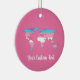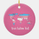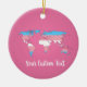 Christmas ceramic ornament with the transgender pride flag with a map of the world in the center of the design. Pink, white, and blue flag of the trans pride movement; with an editable text field for your name or message; a great way to decorate your Christmas tree :D