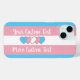 iPhone 15 Case with the transgender pride flag with little hearts in the center of the design. Pink, white, and blue flag of the trans pride movement; with an editable text field for your name or message