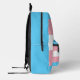 Backpack with the transgender pride flag with little hearts in the center of the design. Pink, white, and blue flag of the trans pride movement; with an editable text field for your name or message