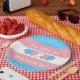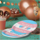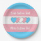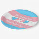 Paper plate with the transgender pride flag with little hearts in the center of the design. Pink, white, and blue flag of the trans pride movement; with an editable text field for your name or message