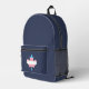 Backpack with maple leaf from flag of Canada in the colors of transgender rainbow flag of pink, blue and white; trans pride lgbtqiap+ design,