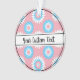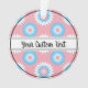 Christmas ornament with a seamless modern geometric flower pattern in the colors of the transgender pride flag - a pink, white, and blue trans pride design on a pink background; with an editable text field for your name or message; a great way to decorate your Christmas tree :D
