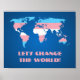 Value Poster with transgender rainbow stripes map of world, trans pride flag design on blue background, Let's Change the World template text, by pinkbrickroad