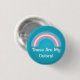 Round Button with transgender rainbow stripes of blue, pink and white; trans pride flag design on blue background, "These Are My Colors" template text, by pinkbrickroad
