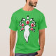 My 11 yo wore adult XL (5’7” 165#). The 8yo is small framed. She wore adult small and tied it in the back. Grandma wore adult large with long sleeve shirt underneath. Tall girl adult medium. Dark haired male adult large. Good quality dark Heather gray, Gildan brand shirt. -it was next up from basic choice and cost about $20 per shirt. Not too thick or thin. Washed and dried well, no major shrinkage. Not see-through. Can wear a bra under it fine. Screen print is just as shown and well done, front and back.