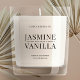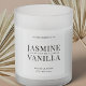 Elevate your candle boutique packaging design with personalized translucent candle labels. This modern candle vinyl sticker design features elegant serif fonts, transparent background and black text and is sure to make your wax candle jars look the part! The default template size is set with 4 square clear candle labels, which are approximately 3x3" each.