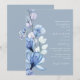 Transparent Floral Dusty Blue Monogram Wedding Invitation