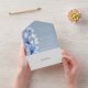 This all-in-one wedding invitation features pretty transparent dusty blue florals and elegant typography. The invitation includes a perforated RSVP card that can be individually addressed or left blank so you can handwrite your guest's address details. Designed by Thisisnotme©