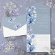 Transparent Floral Monogram Dusty Blue Wedding All In One Invitation